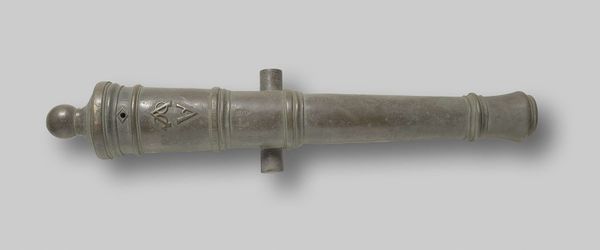 Editor: Here we have an anonymous five-piece candlestick, dating from around 1590 to 1596, crafted from metal. The cool grey tone gives it such a weighty, solid presence. How do you read the composition? Curator: Notice how the formal arrangement dictates the viewing experience. The artist's selection of material invites questions of its weight and potential for crafting symbolic depth through light, form, and shadow. Consider the balance achieved between the spherical and cylindrical forms. The articulation creates an interesting interplay. Editor: I see how those opposing shapes create a rhythm. Were these sort of objects mass-produced? Curator: That question veers toward socio-economic art history; the form itself suggests repetition and standardization, even while showcasing some artistry. Note how the gradations in its surface texture emphasize a sense of tactile engagement. Editor: So the subtle variations in the metalwork add complexity to its form. Curator: Precisely. What could you say about the overall symmetry and balance achieved? Does the central, bulbous section feel proportional to the base and upper portions? Editor: I think it’s cleverly balanced - the shapes mirror each other to an extent. I'm understanding now how the formal components contribute to its character. Curator: And how a focus on design reveals the artistic decisions underpinning what might initially seem like simple utility. Editor: I never considered that art extended to candlestick design, but I’ll never look at one the same way again!