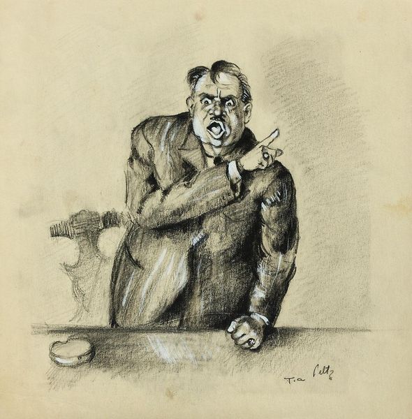 This is Thomas Hart Benton's self-portrait, rendered in lithograph. It presents us with an intimate view into the world of an artist deeply invested in representing American life. Benton, born in the late 19th century, was a figure shaped by the shifting sands of American identity, particularly during the interwar period. Here, we see Benton not just as an artist, but as a working man. The textured lines of the lithograph capture his rugged features and paint-stained clothing, situating him firmly within a tradition of labor. His stern gaze speaks volumes about the artist's commitment to his craft, and to the representation of everyday life. The contrast between the rough texture of his skin and the tools of artistic creation invite us to consider the intersection of physical work and intellectual pursuits. Ultimately, this self-portrait encapsulates Benton's desire to forge a distinctly American artistic identity rooted in realism and an appreciation for the common person. It is a personal statement imbued with the cultural and political ideals of its time.