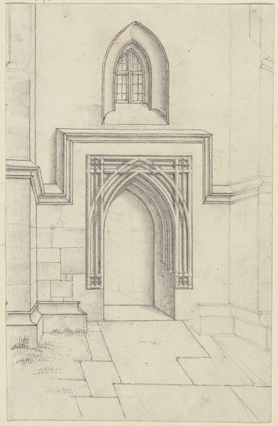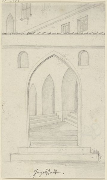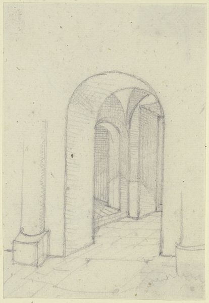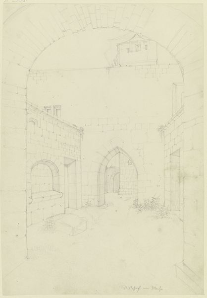 Karl Ballenberger created this pencil drawing, Pointed Arched Wall Openings, sometime in the first half of the 19th century. The composition invites us to consider the interplay between solid architectural forms and the void of the openings. Notice how Ballenberger uses precise lines and shading to define the stone blocks of the wall, creating a sense of depth and texture. The pointed arches, a signature of Gothic architecture, are rendered with careful attention to their geometry and proportion, drawing the eye upward. Ballenberger’s drawing isn't just a representation; it's an exploration of form and structure. This echoes a fascination with architecture as a symbolic language during the 19th century, where every line and curve could speak to cultural and philosophical ideals. The drawing becomes a site where architecture and representation meet, challenging us to see beyond the surface.