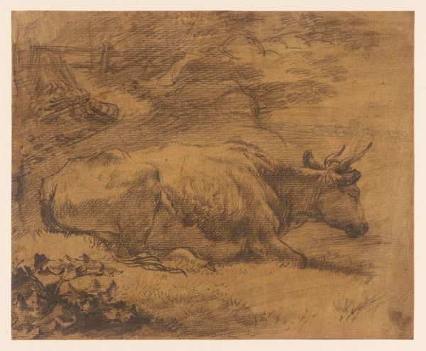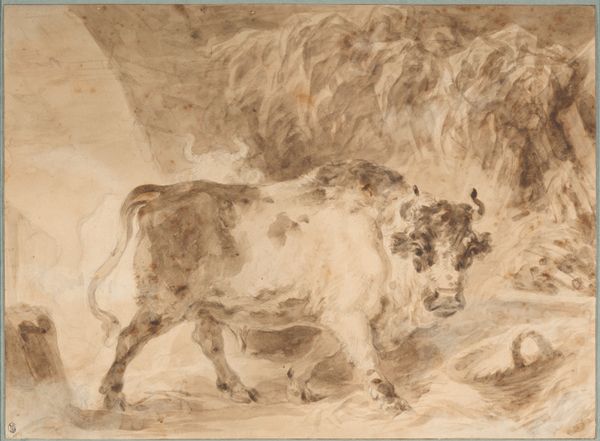 Jan Roos I, a Flemish artist, created this drawing of a cow, goat, and sheep lying down in ruins, using pen and brown ink in the early 17th century. Roos was known for his animal studies, a genre that gained prominence during a time of agricultural shifts and increased urbanization. This drawing invites us to consider the relationship between animals and the pastoral landscape that was so valued in the 17th century. Note the use of ruins in the background, a compositional element that underscores the tension between nature and civilization. The animals, rendered with a gentle realism, appear peaceful, yet there is an awareness of their presence within a scene marked by decline and neglect. Rather than present a romanticized view of rural life, Roos acknowledges the complexities of the human relationship with the natural world. These images reflect themes of care, labor, and a subtle commentary on the social and environmental changes of his time.