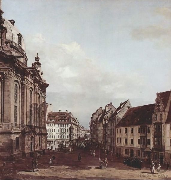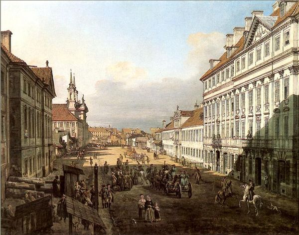 Bernardo Bellotto painted 'Freyung in Vienna, View from the southeast' to capture the essence of eighteenth-century Vienna. Bellotto, nephew of the famed Canaletto, brings a similar eye for architectural detail to this bustling urban scene. Painted during the reign of Empress Maria Theresa, Vienna was a city undergoing significant transformation. It was a hub of imperial power, aristocratic privilege, and burgeoning commerce. In this painting, we see a snapshot of daily life played out against the backdrop of the grand Freyung square. Carriages, vendors, and passersby create a vibrant tapestry of social interactions. It hints at the complex intersections of class, labor, and gender roles within the city. Bellotto's decision to focus on the everyday activities of the people, rather than solely on the architectural grandeur, offers a glimpse into the lived experiences of Viennese society. Through this artwork, we gain insights into the social dynamics of a city on the cusp of modernity.