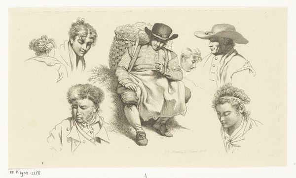 This study sheet with figures was made in December 1809 by Jacob Ernst Marcus. The sheet offers us a window into the artist’s practice and the social realities of the time. The image creates meaning through its depiction of various figures, offering a glimpse into Dutch society during the early 19th century. Note the contrast in attire and posture, and the man resting beside the basket. Were these studies for a larger composition? Dutch society at this time was undergoing significant transformation due to the Napoleonic wars, the Batavian Republic and subsequent Kingdom of Holland. Social class, economic hardship, and changing political landscapes influenced the production and reception of art. To gain a deeper understanding, we can consult archives, historical documents, and period literature, enriching our understanding of the artwork within its specific historical context. The meaning of art hinges on social and institutional contexts.
