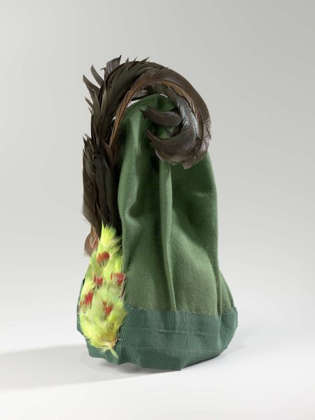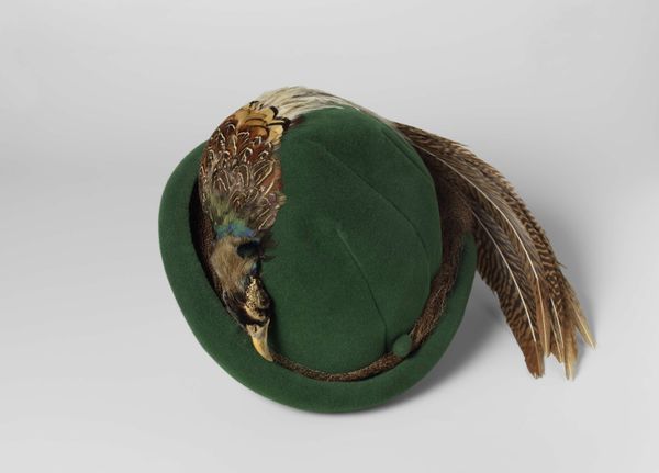 This "Hat with a Pheasant Decoration" by Legroux Soeurs, sits here like a curious riddle wrapped in felt and feathers. The hat, in its rich, earthy green, has a tactile quality that makes you want to reach out and feel its soft texture. Then, the pheasant – a burst of untamed nature. The feathers aren't just stuck on; they seem to grow organically, disrupting the hat’s neat form. Look closely at the beak peeking out! It’s a beautiful detail, isn’t it? It is like the hat has caught and cradled a small piece of the wild. It makes me think about surrealism and the work of someone like Meret Oppenheim. The Legroux Soeurs invite us to reconsider the everyday, to see the unexpected beauty in the clash of the domestic and the wild. It's a reminder that art, in all its forms, is an ongoing conversation, an invitation to play, and an exploration of what it means to be human.