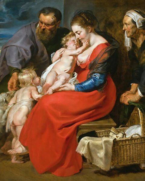 Editor: We're looking at "The Holy Family with Saints Anne and Catherine of Alexandria" by Jusepe de Ribera, created in 1648, using oil paint. It’s really striking how Ribera captures textures – the fabrics, the skin… How do you approach interpreting this kind of work? Curator: I'm particularly interested in the socioeconomic conditions under which these materials became available. The sourcing of pigments for the oil paints, the labour involved in preparing canvases, even the kind of clothing depicted - it all speaks to systems of power and trade at the time. Notice the richness of the ultramarine, likely derived from lapis lazuli; its presence signals patronage and expense. Editor: That's fascinating! So you see the materials themselves as holding meaning? Curator: Precisely. Ribera's use of chiaroscuro wasn't just a stylistic choice. Think of the societal context: were those darker tones linked to cultural events or preferences during that time? Editor: I see your point. Is this exploration limited to the creation process? Or does consumption also affect this painting? Curator: Absolutely! We need to consider the art market, how works like these were acquired, and by whom. Who had access to these images, and how did they reinforce or challenge the social order? Editor: This gives me a completely different perspective. It's not just about aesthetics, but the tangible realities that enabled the painting's existence and later reception. Curator: Exactly! The act of viewing and owning art is a part of the exchange between creation, labor, and value within the world. Hopefully, we can be mindful of that, to better understand how art acts as a physical document with much to teach us about that relationship.