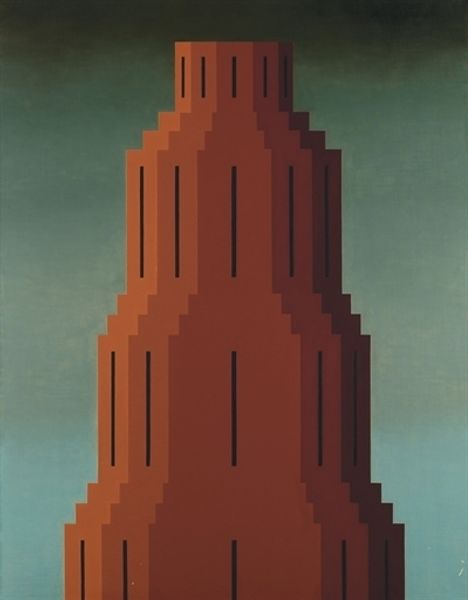 This 'Tower' by Roberto Aizenberg, is made with paint, perhaps oil or acrylic, on what looks like canvas. It’s striking how flat the colors are, almost like cut paper, and the way the green lines hold the black ones in place. Looking closely, the paint is applied smoothly, with very little texture, so the process feels hidden, or maybe even like a diagram. See how the lines of green run top to bottom, creating a kind of armature, while the black is more solid. This makes me think about the relationship between architecture and nature, or maybe about how we build structures, both physical and mental. The simplicity of the colors and shapes reminds me of some of Agnes Martin’s grids, though Aizenberg’s has this strange, unsettling quality that makes it hard to look away. Like Martin, he shows us how much emotion can be packed into the most basic forms. It feels like an exercise in seeing.