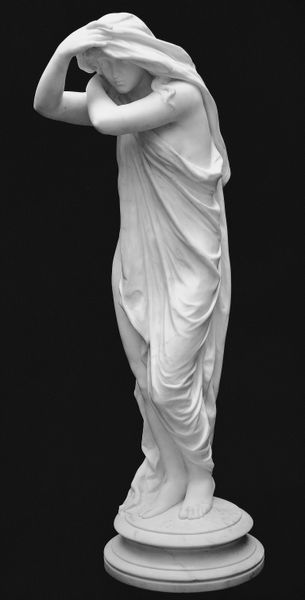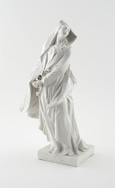 Editor: This photograph, taken before 1935, presents a mourning bonnet with a long veil, crafted from black crepe georgette. The way it's draped gives the piece such a dramatic, almost haunting quality. What strikes you most about this work? Curator: The image speaks volumes about the social constraints and performative aspects of grief, particularly for women in the early 20th century. This head covering is more than just an object; it's a symbol of mandated sorrow, of a prescribed identity. Doesn’t the geometric quality, almost an abstraction, of the fabric against the black background also suggest an attempt to control and contain overwhelming emotions? Editor: I hadn't considered the performative aspect so directly. It’s interesting how an object can represent an entire set of social expectations. Do you think the anonymity created by the veil plays into that as well? Curator: Absolutely. The veil conceals, but also declares a status. It signifies the wearer's temporary removal from social life, while simultaneously announcing their adherence to societal norms. Consider how fashion, even in mourning, dictates gendered roles and expectations. It makes you think about the ways clothing can both liberate and imprison. Editor: So, viewing it through a feminist lens, we can see the photograph revealing a complex interplay of personal grief and public performance. Curator: Precisely. And reflecting on how these societal rituals have shifted, or haven't, in contemporary culture, reveals ongoing conversations about gender, visibility, and the ways we process loss. What do you take away from this? Editor: I see now that it isn’t just a still life. The image captures how material objects are so often intertwined with our lived experience and social identities.