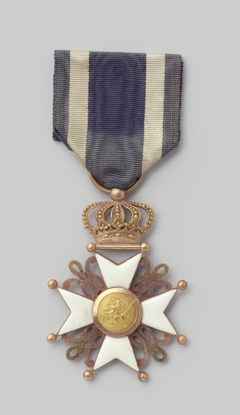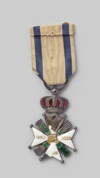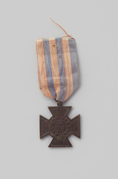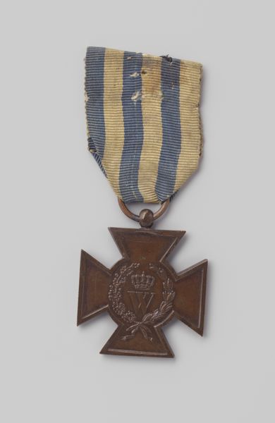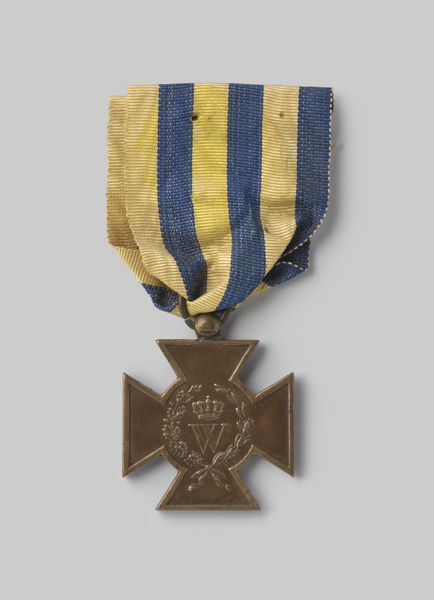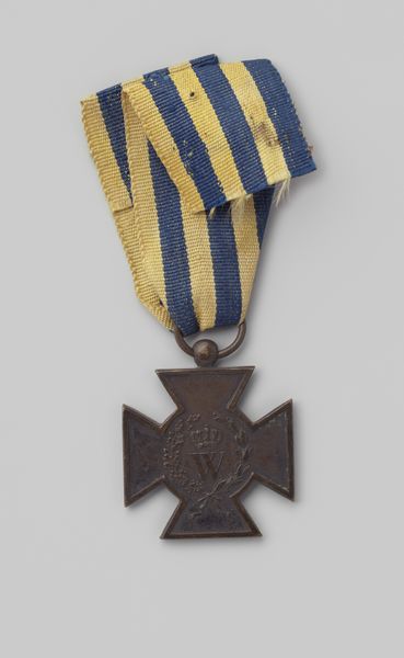 This is the Metal Cross 1830-1831, a medal designed by David van der Kellen, likely around 1831. It was a period marked by significant political upheaval in Europe, including the Belgian Revolution, which this medal commemorates. The Metal Cross was awarded to those who fought in the Dutch army during the Ten Days’ Campaign. It represents the Dutch monarchy's effort to assert dominance over what is now Belgium. The cross as a symbol carries heavy religious and historical connotations, here repurposed to signify military honor and national identity. The colors of the ribbon, blue and yellow, are those of the Dutch flag. It is a striking yet somber object, embodying both pride and the human cost of conflict. Consider this medal as more than a token of valor, but as a symbol which tells a complex story about nationhood, conflict, and identity in a changing world.