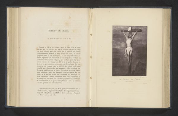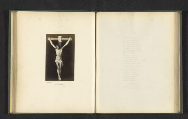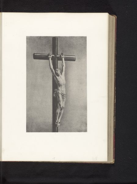 Editor: This image shows an ivory crucifix, believed to be from before 1857, and it comes from the cathedral of Le Puy. The figure of Christ seems so fragile against the dark cross. How does its medium—ivory—affect your perception of the work? Curator: The fragility, exactly! The ivory is… what’s the word? Translucent. Christ almost glows from within. It gives this intense sense of presence and pain, and yeah, perhaps a touch of sadness too. I’d imagine the choice of ivory reflects how the commissioner wanted to emphasize Christ’s purity, you know? But thinking about it, you have to wonder about the impact of colonialism on creating an image like this from such an expensive material. Editor: Colonialism... that’s interesting. So, this object might be tied to global power dynamics? I hadn't considered that! Curator: Absolutely! Think of where ivory comes from. It’s never just a neutral material; it carries the weight of its origin, its history. It prompts an essential question: does the material contradict the image in terms of morality? Also, note how Christ's arms are outstretched; the Romanesque sculptors had a different way of emphasizing agony on the cross. It almost appears to say “come here." Do you sense that? Editor: Yes, now that you point it out. It's like a beckoning. And it's subtle, almost unsettling considering the context. Curator: Unsettling is a good word. Art isn't always comfortable; sometimes it challenges us, provokes thought, and asks difficult questions. Isn't that the best art, in some ways? Editor: It definitely gives you a lot to consider! It changes how I look at the figure, and other art too. Curator: And maybe that's what it's all about, the chance to reflect.