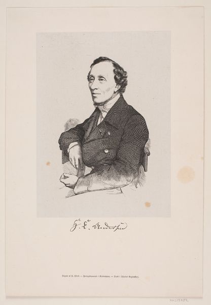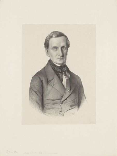This is Albrecht Schultheiss’s portrait of William Sterndale Bennett, rendered in the understated medium of lithography. Schultheiss, working in the 19th century, captures Bennett, a leading figure in English classical music, in a pose that speaks to the era's emphasis on respectability and accomplishment. It’s interesting to consider the social and cultural expectations placed on individuals like Bennett, who navigated a world where artistic expression was both celebrated and scrutinized. As a composer and educator, Bennett inhabited a space shaped by class distinctions and gendered norms. The portrait, with its formal composition, reflects a desire to project an image of authority and refinement, aligning with the values of Victorian society. What does it mean to create art that reflects society's values, while also seeking personal expression? This image invites us to consider the complex interplay between identity, representation, and social context.