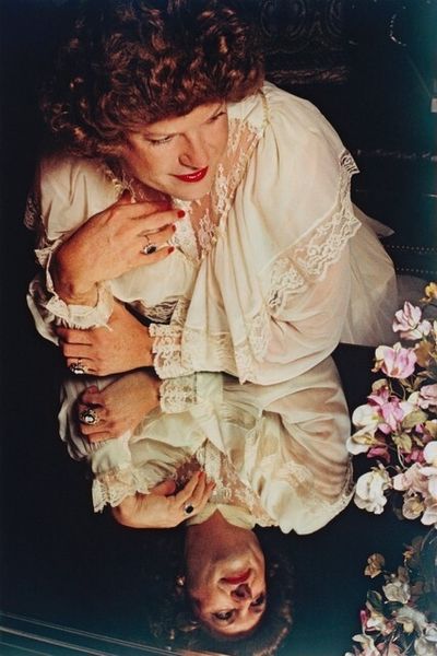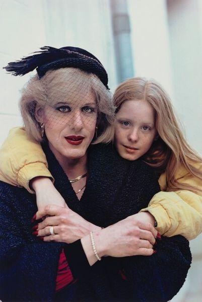 Curator: This photographic portrait, likely taken sometime in the 1980s, is titled “Davida and Mate, Corinne” and comes to us from the lens of Mariette Pathy Allen. Editor: My first thought is "celebratory". The rich green background, the vibrant floral patterns—they lend an almost Edenic quality to this intimate portrait. Curator: Notice the composition. Allen uses the natural foliage as a soft, blurring backdrop, directing our focus squarely on the subjects and the interplay between them. It’s a deliberate structure to invite the gaze. Editor: Right. I’m especially drawn to the clothing choices and what they suggest. Davida wears a vibrant strapless dress, seemingly at odds with what may be construed as traditionally masculine features. Her companion, Mate, Corinne, adopts a more traditionally understated and socially-sanctioned form of feminine dress in her printed top, suggesting different and complementary forms of womanhood. The way Mate places her hands creates a very familiar sense of love and unity. Curator: The contrast in patterns indeed draws out fascinating distinctions, doesn't it? Allen subtly guides us to perceive these differences. Think about the weight carried by these fashion choices. A bold reclamation for Davida and a gentle confirmation for Mate. The layers are quite palpable. Editor: I also notice the light. How it catches on their smiles, their jewelry, giving them a kind of timeless glow that echoes ancient representations of love, like Aphrodite and Psyche or Ruth and Naomi. I mean, at a basic level we see a friendship here, a relationship. At a more complicated level, there's a story to be told here about friendship among different people in what might have been a largely intolerant time for some people. Curator: It's interesting how you link it to a timeless trope through these objects! The artist indeed successfully establishes dialogue, where the composition subtly forces engagement with potentially contentious thematics of representation. Editor: For me, this portrait becomes a poignant visual testament to the power of identity. I can certainly read the social message through Pathy Allen's photographs, inviting me to contemplate what is represented and the historical value behind these images of her close community of friends. Curator: Absolutely. Looking closely today I understand the work's form enables these potent meanings in retrospect.