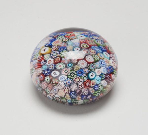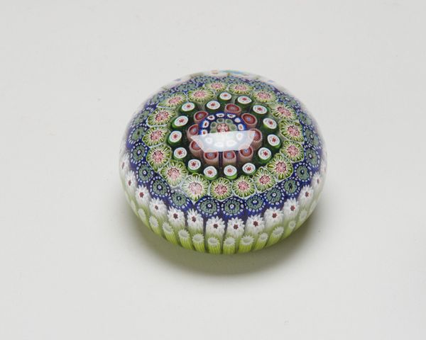 This beautiful paperweight, made of glass by Clichy Glass Works, invites us to consider the intersection of art, labor, and industrialization. Though small, its intricate design reveals a world of complex craftsmanship. The Clichy Glass Works, like many manufacturers of the industrial era, depended on a stratified workforce. Consider the gendered nature of labor, for example, where women and children often performed detailed, repetitive tasks. How might those conditions and societal expectations influence both the creation and reception of decorative objects like this? This paperweight is more than a functional item; it’s a snapshot of its time. The delicate floral patterns encased in glass become metaphors for fragility and preservation, reflecting a desire to hold onto beauty amidst rapid social change. It’s a poignant reminder of the human touch amidst mass production, and invites us to reflect on the personal stories embedded within everyday objects.