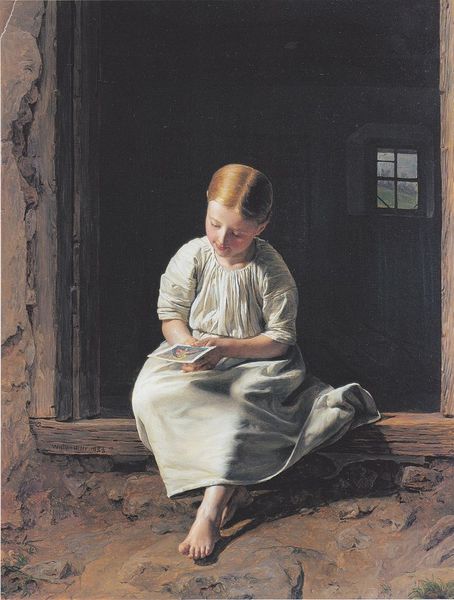 Winslow Homer painted "Girl Reading on a Stone Porch" using oil on canvas, a familiar medium for the time. But let’s consider the materiality here. The setting is roughly hewn, the stone porch speaking to the labor of quarrying and construction, an implicit contrast to the girl’s pink dress and absorbed leisure. The white apron suggests domestic duties, yet here she is, momentarily freed from the demands of work by the book in her hands. Homer uses visible brushstrokes to bring attention to the paint as a substance, drawing attention to the materiality and the way it reflects the world. The visible brushstrokes capture the rough texture of the stone porch and the softness of the girl's dress, heightening our awareness of these distinct tactile experiences. Looking closely at the artwork, we realize Homer wants us to notice both the girl's interior world of reading and the material conditions that surround her. By emphasizing the material nature of the scene, Homer blurs the boundaries between the artistic experience and the everyday world.