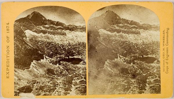 Curator: Let’s take a look at this stereo card, "Niagarawatervallen gezien vanaf de Niagara Clifton Brug bij nacht", taken sometime between 1869 and 1889 by George E. Curtis. Editor: Wow, it's eerie, isn't it? The monochromatic palette and misty atmosphere, I can almost feel the dampness radiating from the card. Curator: Indeed. Niagara Falls held a particular fascination in the 19th century, becoming both a symbol of natural wonder and a site of industrial ambition. Stereoscopic views like this allowed people to experience it from afar. Editor: The gelatin silver print is quite striking. I am wondering about the labor involved in capturing this scene at night, the preparation of the gelatin emulsion, the timing needed, then to finally come to market for mass consumption...all the hands and time dedicated to create this "natural" view is kind of obscuring the true face of the waterfalls... Curator: Interesting perspective. This image, however, also caters to a growing tourism industry, providing visual souvenirs. Its distribution speaks volumes about changing leisure activities and the democratizing force of photography at the time. Editor: But think about the chemicals needed for processing, too! They certainly played a role on Niagara river... The photographic process relies on this commodification of nature into something that can be owned and consumed. The materiality clashes the beauty and sublime feelings they try to instill in the viewers... Curator: A fair point. And it reminds us that our aesthetic appreciation is always intertwined with broader social and environmental contexts. It makes one question about art and manufactured image and its public role. Editor: Exactly! Seeing the Falls through this lens – no pun intended – forces us to acknowledge the industrial machine churning beneath its majestic surface. This card gives me shivers, metaphorically, too! Curator: Ultimately, it highlights how art, even something seemingly straightforward like a landscape photograph, is embedded in a complex network of cultural, economic, and technological forces. Editor: Well said! From a physical, natural wonder we jump into labor and social realities through the craftmanship on this small rectangular. Great, right?