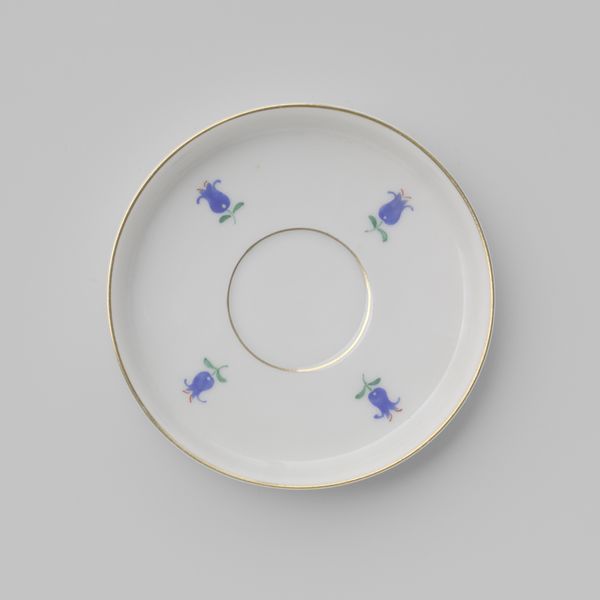 This painted porcelain plate was crafted in Loosdrecht, its surface adorned with delicate green floral motifs. The central posy and scattered sprigs echo a long history of floral symbolism, dating back to ancient times. Consider the enduring allure of flowers in art—symbols of ephemerality, beauty, and renewal. From the floral garlands in Roman frescoes to the blooms scattered across Renaissance paintings, flowers have served as potent reminders of life’s transient nature. In Dutch still life, a wilting bloom might represent the fleeting nature of earthly pleasures, a ‘memento mori.’ Yet, here, the stylized simplicity of these green sprigs lacks the overt moralizing of earlier works. The subconscious desire to reconnect with nature perhaps? This echoes humanity's deep-seated need for beauty and order, a visual balm that transcends time. We see these motifs return, morph, and resurface, their emotional resonance ever-present.