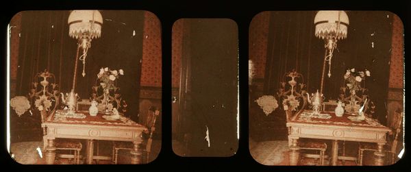 Curator: Adrianus Scheltema-Beduin captured this scene in 1899 with "Vrouw aan een koffietafel in de achterkamer van Singel 256, Amsterdam, Nederland." Editor: The first impression I get is a sense of quiet domesticity—a stillness that feels almost haunting due to the photography's warm sepia tone. Curator: It's a genre painting frozen in time. We have to remember this was a period of immense social change, but such images offered a curated ideal of feminine life. Editor: You're right; the setting amplifies this sensation, all these subtle symbols—the ornate curtains, the china, the position of the woman at her coffee, it’s staged performance within bourgeois life. I'm thinking particularly about how the objects reflect that sense of prosperity and quiet confidence. Curator: Exactly, the table isn’t just a table. It is symbolic of wealth, yet at the same time, it tells a subtle story about gender roles during the Dutch Golden Age and their continuation well into the 19th century. She is defined by the private sphere. Editor: And within that carefully crafted sphere, is there room for agency? Or is she simply a passive object, beautifully framed within her domestic tableau? The weight and arrangement of all these objects... What might those layered symbols have signaled to its original audience? It definitely deserves a closer consideration. Curator: Yes, viewing it through an intersectional lens opens up further avenues. Where does this idealized portrayal meet the reality of women’s experiences at the turn of the century? We can deconstruct the notion of “genre painting” itself. What is included or omitted from this narrative and why? Editor: The light filtering in makes me ponder cycles: of life, of the day, and the cyclical nature of visual tropes within domestic scenes—reminding me that objects and their placement are a language of cultural memory. Curator: Absolutely, this photography offers a valuable starting point for further exploration of social expectations, power dynamics, and even the subtle acts of resistance or self-expression that might have occurred within such spaces. Editor: What an incredible scene! A simple picture transforms to a deeper investigation into domestic codes. Curator: It does indeed, it highlights the layers of meaning embedded within this photograph!
