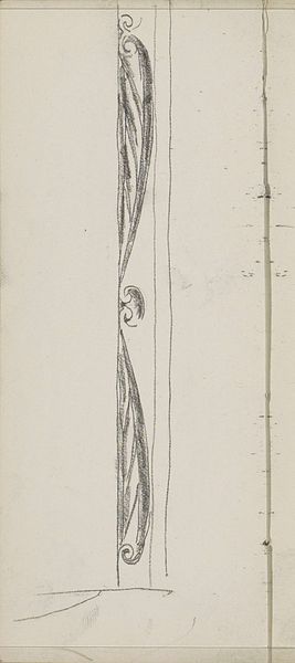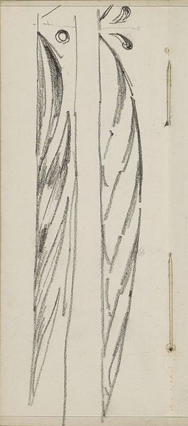 Curator: This is "Ornamenten met rolwerk," a drawing by Gerrit Willem Dijsselhof. Its creation is situated between 1876 and 1924. We see it as a testament to Dijsselhof’s engagement with the artistic currents of his time, here on display at the Rijksmuseum. Editor: It's a compelling image, even in its sketch-like state. There's an Art Nouveau sensibility, definitely. The recurring motifs suggest a planned application, maybe for furniture or textiles? It has an iterative feel about its process. Curator: Precisely. Dijsselhof, though often framed as a decorative artist, straddled the line between art and craft, defying categorization. He explored wood carving and furniture design. Editor: Considering that era, I wonder about the context of artistic production. How did artists like Dijsselhof navigate the social hierarchy, balancing their artistic expression with the demands of patronage or commercial interests? Was there a clear separation in his mind between 'fine art' and applied design? Curator: These are central questions when looking at his artistic intention and output. Dijsselhof aimed for art to be an experience. His work often intersected with socialist ideals— a fusion of beauty with the everyday lives of the common person. There were even efforts at communal workshops around this time, hoping to give people artistic exposure and careers, thereby uplifting them. Editor: So this "sketchbook art" may then reflect a conscious effort to integrate artistic practices more deeply into societal structures. It reminds me how art movements play a huge role in politics. This brings into question accessibility and the social function of art at the time, a direct rejection of elitism. Curator: I completely agree. This piece offers a valuable window into those efforts, showcasing a desire to democratize design. Its rough nature is an authentic, tactile demonstration of this, of artistic thought in its infancy. Editor: Yes, studying these forms of artistic intention is important. This shows us not just finished work, but artistic desire— which leads me to view such works as political testaments and artistic attempts at reshaping the values of labor, consumption and daily life. Thanks for pointing out all this context! Curator: The pleasure was all mine. There’s a beautiful complexity when we consider all its material and political roots.