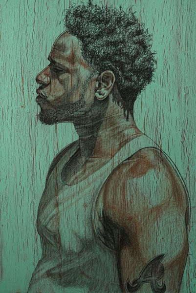This is Alfred Conteh’s ‘Cam’, executed in the traditional materials of oil paint on canvas. But the painting's surface is anything but traditional. The artist is using the medium to full effect, achieving almost photorealistic effects. Look closely, and you'll notice drip marks in the background. This technique reminds us that painting isn't just about representation; it is also about the physical act of applying paint. It is process-driven and experimental. Conteh builds up texture, allowing the paint to run and pool, creating a dynamic interplay between control and chance. The subject's intense gaze draws you in, but the real story lies in the making. The labor is evident, a testament to the artist's skill and commitment. This piece refuses the distinction between craft and fine art. Instead, Conteh uses technique and material to make something new, infusing it with emotion, and reflecting the richness of lived experience.