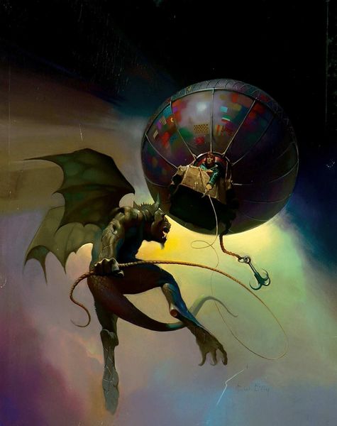 Boris Vallejo painted Mahr with what looks like acrylic, maybe mixed with oil, and airbrushing to achieve a sort of photorealism. Look at how Vallejo manages a tight contrast between a very dramatic and highly rendered scene. Check the softness around the wings of the bat against the super-real body of the woman, the two central figures in the piece. There is a real mastery of the uncanny and the painterly. The light and shadow are so extreme, as if this is a stage play rather than a scene from life. The musculature of the woman is so extreme it appears almost as a caricature, a cartoon of how a superheroine is supposed to look. Like the work of Frank Frazetta, Vallejo constructs a way of seeing a kind of hyper-real fantasy. Vallejo's work, like that of many comic artists, points to a way of seeing that is always open to fantasy.