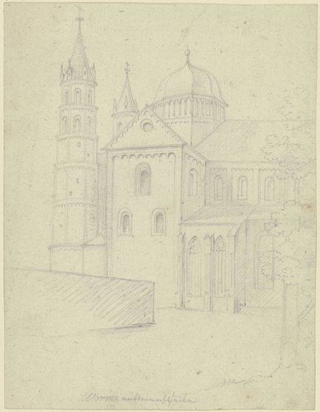 Editor: Here we have Friedrich Maximilian Hessemer’s "S. Giovanni in Laterano in Rom," a pencil drawing on paper from 1828. The cityscape feels almost dreamlike in its delicacy. What strikes you most about this piece? Curator: Well, right away, it whispers a story to me—of Hessemer, perhaps sketching en plein air, trying to capture the ancient soul of Rome with just a pencil. It reminds me of those travel journals, you know, the ones filled with quick impressions and fleeting moments. Do you feel the immediacy in those lines? Editor: Absolutely, especially in the foreground vegetation. It feels like a quick notation rather than a detailed study. Curator: Precisely! It's like a shorthand for 'Rome'. For me, though, it’s the choice of viewpoint that intrigues me. He positions himself just so, among ordinary dwellings to highlight the cathedral. Did Hessemer feel this way or just liked the architecture? Editor: I hadn't considered that tension. It does give the church a slightly aloof presence. So much detail is visible with some sections merely implied, a visual dance, don’t you think? Curator: It is. You notice it particularly in the facade of the cathedral, don't you? That tension really highlights the artist's personal engagement, perhaps even reverence, I would add. Art is the conversation. Editor: I can certainly see how you’ve weaved your own story into Hessemer’s. It's incredible how much a simple pencil drawing can hold. Curator: It does make you wonder, doesn't it, what other stories are waiting to be teased out?