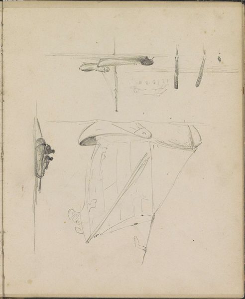Curator: Looking at this drawing, titled "Man on a Moored Boat on a Quay," a pencil drawing realized sometime between 1834 and 1903, courtesy of the Rijksmuseum. There’s a sense of quiet industry that really resonates. What are your initial thoughts? Editor: There's an immediate feeling of lightness, almost fragile in its rendering. It's a very sparse, straightforward sketch – minimal lines defining the essential structure of a boat and the adjacent dock. There is a beautiful emptiness in this pencil landscape that emphasizes line and raw material. Curator: It definitely reflects Weissenbruch’s broader artistic focus; his interest in the social dynamics of labor, and of capturing scenes from ordinary working life, particularly among the laboring class who interact daily with the canals and docks. Editor: Absolutely. Thinking materially, the visible grain of the paper becomes an integral element, further softening the scene. I think that also helps speak to how Weissenbruch saw the materiality of daily labor; he's calling our attention to the conditions within which it all happens. Curator: It speaks to the broader narrative of Realism—how art began reflecting the mundane realities and class consciousness and anxieties of its time—this artistic gaze being applied to often marginalized people. Do you see how his work can contribute to how we see the role of labor today? Editor: Most definitely. Realism isn't merely a stylistic choice, but a commitment to truthfully portraying the world and power dynamics, reflecting the inherent value and struggles of laborers that is rarely reflected within cultural expressions. This simple scene acts as a document. It asks us to reconsider the aesthetics and the narratives. Curator: Indeed, considering the means of production involved, how the raw materials interact, and the scene itself becomes imbued with a socio-political charge. Well, a worthwhile perspective, I must say. Editor: And yours offers valuable context for understanding its social implications— a thought-provoking piece when considered both artistically and contextually.