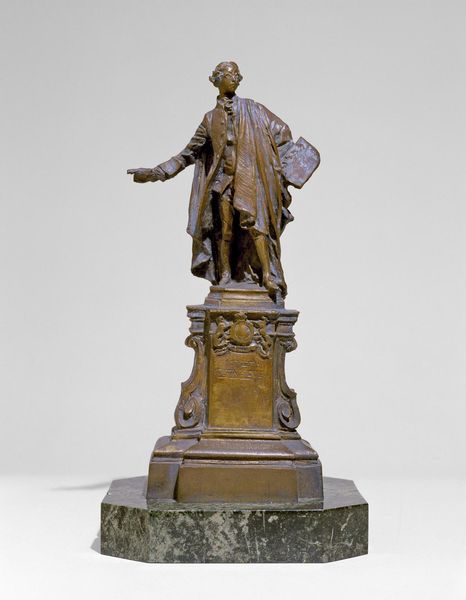 Jean-Antoine Houdon sculpted this imposing bust of Pierre André de Suffren de Saint-Tropez in unpainted marble, likely sometime in the late 18th century. Marble is a metamorphic rock, prized for sculpture since antiquity. Transforming it requires skilled labor. Houdon would have begun with a rough block, gradually carving away stone using chisels, rasps, and drills. The smooth, pale surface is achieved through laborious polishing. The choice of marble speaks to the ambition of both artist and subject. Houdon was a leading sculptor of his day, and marble was a material strongly associated with permanence and classical ideals. The material elevates Suffren, a celebrated naval officer, placing him in the same company as ancient heroes. The weight of the stone, both literal and metaphorical, adds to the sense of authority and accomplishment. Ultimately, the sculpture stands as a testament to the enduring power of skilled handcraft, and the social importance attached to certain materials.
