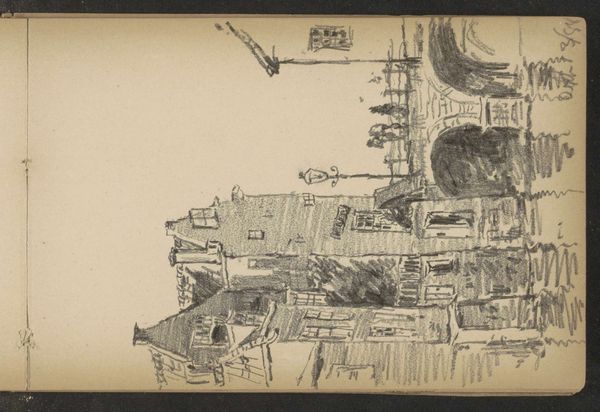 Alexander Shilling sketched "Gevangenpoort te Den Haag" using graphite or a similar medium, capturing the essence of the Gevangenpoort, a former prison in The Hague. The drawing presents a network of lines and geometric shapes that define the architectural structures. Shilling uses line to construct the building and the surrounding environment. The lines are economic, almost schematic, suggesting a focus on capturing the essential forms and relationships rather than detailed representation. The composition employs an almost diagrammatic approach, with elements positioned to convey spatial relationships and structural details. This creates a sense of depth and perspective, inviting the viewer to consider the interplay between the various elements. The use of line and form serves to distill the essence of the site, reducing it to its most fundamental components. The drawing invites reflection on how the building intersects with the urban landscape. It's a compelling example of how an artist uses formal elements to convey spatial and structural ideas.