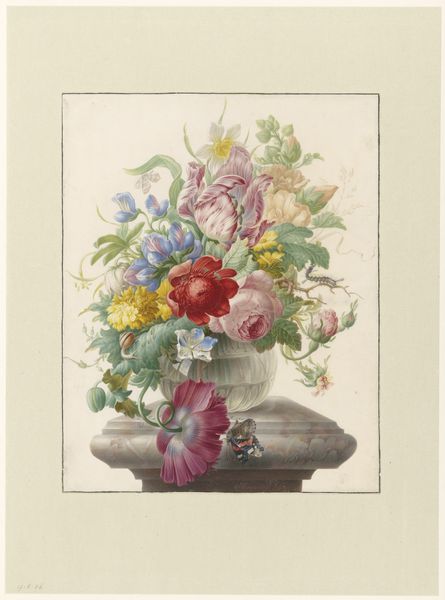 Anton Umpfenbach created this watercolor, titled "Bouquet", during a time when the rigid social structures of the 19th century dictated very specific roles for men and women, influencing even the art they produced and consumed. The delicate rendering of flowers was often relegated to the domestic sphere, a space historically associated with women. Note how Umpfenbach, as a male artist, approaches this traditionally feminine subject. Does he subvert expectations, or does he reinforce them? Consider the symbolism of the bouquet itself. Is it a celebration of beauty, or is it a commentary on the fleeting nature of life? These flowers, with their layered and shifting colors, invite us to reflect on the complex interplay between gendered expectations and artistic expression in the 19th century.