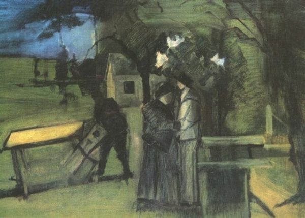 Ibrahim Calli painted "Ladies Touring Ada in the Morning" using oil on canvas. Calli, as one of the first-generation Turkish painters trained in Europe, brings a unique perspective to the representation of women in his art. Here, we see two women walking through a wooded landscape, their attire suggesting a somber occasion or perhaps a reflection of the conservative norms of the time. One figure, veiled in black, evokes a sense of mourning or concealment, contrasting with the lighter, earth-toned dress of her companion, who leans on a walking stick. In the background, another woman and child offer a glimpse into the cycle of life. The setting on the Island of Ada offers a location of both beauty and isolation, where personal stories unfold against the backdrop of nature. The painting captures a moment of introspection and companionship, inviting us to consider the complex roles and emotions of women in Turkish society during the early 20th century.
