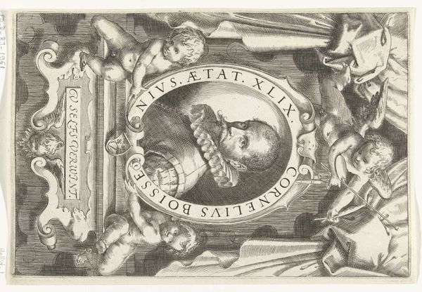 Curator: Looking at this small painting by Jacob van Campen from around 1645-1650, I am struck by the…stillness. And I find myself wondering, where does van Campen expect us to find beauty? Editor: Well, right away I see more than stillness. It’s that almost suffocating density, all squeezed into this simulated niche! This work is a *Vanitas Still Life with Skull, Laurel Wreath, Book and Two Burning Candles*. I immediately zoom in on the composition itself: the claustrophobic layering feels very deliberate. Death here is breathing down our necks. Curator: A nice turn of phrase! It's difficult, this work is more complex than the simple morality lessons typical of the style. Vanitas paintings during the Baroque period were rife. Skulls, guttering candles – constant reminders of our mortality, like a morbid to-do list. Editor: I agree! But this composition does not feel entirely pessimistic. Look how the skull is crowned with a laurel wreath, the classical symbol of victory. Here we get not only physical demise, but triumph! Even the snake, almost invisible behind the wreath, is a symbol of rebirth. I interpret the image with some hope! Curator: Hmm, and maybe I am not interpreting the symbolism clearly enough. How the symbols relate to *each other*. I will take your view and push my reflections further down this line: rebirth can only happen once we truly come to terms with death, as natural a process as life itself. Van Campen isn’t just depicting mortality, he’s exploring a cycle. Editor: Absolutely. Think about it in the context of art: all of these objects, the wreath, the snake, the candles have rich artistic histories that span millennia. In short: they give emotional heft to something greater than the painting. As such, they overcome death. This painter knew well, like all the Vanitas authors, that images are forever. Curator: Forever as long as someone finds them compelling enough to gaze, perhaps. Editor: Yes... but art tends to survive and overcome the trials. Isn't it the ultimate victory?