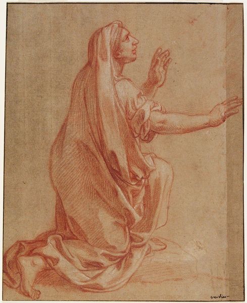 Edward Burne-Jones drew this study of a court lady with chalk on brown paper. The artist was a key figure in the second wave of the Pre-Raphaelite movement in England. Burne-Jones looked to the art, literature, and culture of the Middle Ages for inspiration. He draws his courtly figure with classical garb, which can be seen as an expression of cultural conservatism. But the Pre-Raphaelites were not simply traditionalists, and they frequently engaged with contemporary social issues. The medieval past that they idealize was a world before industrialization. The movement took shape amid intense debates about the role of art in a modern, urban, and industrialized society. It also challenged the Royal Academy's control over British art. To understand Burne-Jones' artistic vision, a historian would look at exhibition reviews, letters between artists, and manifestos from this period. This drawing is part of a complex cultural moment, and its meaning is bound up with the institutions of art.