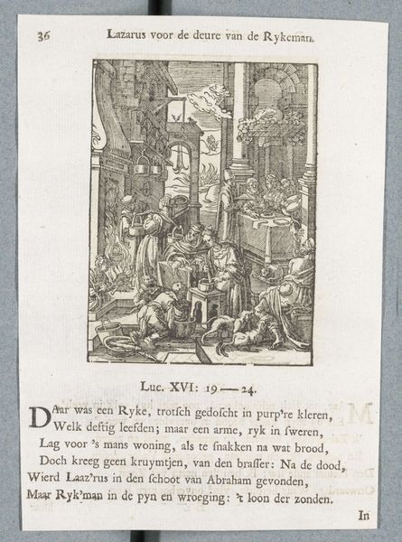 Curator: Let’s delve into Christoffel van Sichem II’s "Maria Magdalena droogt de voeten van Christus met haar haar," a print dating sometime between 1629 and 1740, currently held at the Rijksmuseum. Editor: The engraving style feels so detailed and a bit stiff. Mary Magdalene is in the foreground, washing Jesus' feet with her hair, while everyone else looks on. How do you interpret this work in terms of power dynamics? Curator: I see this as a powerful visual statement on societal structures. Consider Mary Magdalene's positioning – kneeling, a posture of humility and submission. Yet, she’s enacting a powerful act of service, one that challenges the patriarchal norms of the time. The male figures at the table seem taken aback, highlighting the disruption of social order. It really invites us to question: whose story is being told and from what perspective? Editor: That makes me think about her status as a repentant sinner. Does her act of washing Christ's feet with her hair symbolize more than just servitude? Is there an intersectional message about social redemption? Curator: Precisely! Her redemption narrative defies the expectations placed upon women at the time. Van Sichem is showing us a complex scene rich with the politics of forgiveness. Moreover, her action could be seen as resisting patriarchal control, an effort to challenge her marginalization through radical, physical devotion. Think about the contrasts here: a woman, once deemed sinful, now embodies grace. Editor: So, through this one act, Magdalene redefines her identity, pushing against pre-conceived social roles, and van Sichem is communicating that to the viewer through her actions? Curator: Exactly! The composition reinforces these social power struggles. It prompts critical engagement with notions of forgiveness, social status, and gender. Editor: It's interesting to see how one piece of art can communicate social complexities in such detail. Thank you for expanding my viewpoint. Curator: And thank you for the chance to unpack these timely ideas!