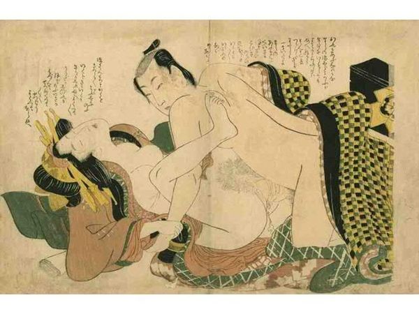 Utamaro rendered this intimate scene with woodblock printmaking techniques. Here, in the floating world of Edo Japan, the gestures of love are both direct and laden with symbolism. Note the woman’s partially covered face, her hair neatly arranged. This reflects a sense of composed modesty— a cultural motif that echoes through centuries, even appearing in Renaissance paintings where averted gazes signify virtue. Consider Botticelli’s Venus, whose demure posture belies the sensuality of her form. The window behind, a grid of light and shadow, is reminiscent of the hidden yet exposed nature of desire itself. These screens have appeared across artistic traditions, from Dutch interiors, to Japanese prints, acting as both barriers and portals. It is as though the image speaks to us from a subconscious level, revealing our universal engagement with the primal dance of intimacy.