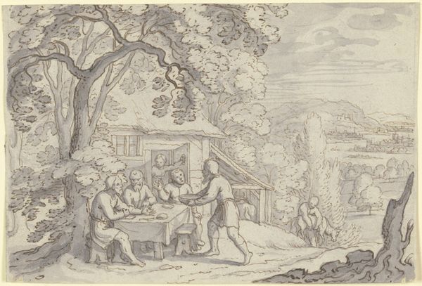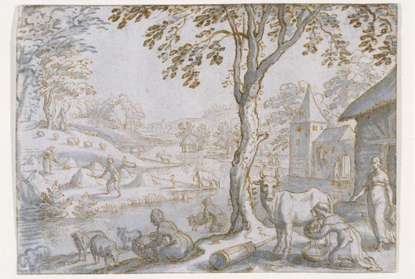Matthäus Merian the Elder rendered this work with pen and brown ink, heightened with white and gray wash. The sepia tones of the ink emphasize the earthiness of the scene. Look at the figures harvesting apples. Some are in the tree, while others collect the fallen fruit into woven baskets. Then notice the laborers transporting barrels, likely full of cider, on a wooden cart, showcasing the labor-intensive processes of agriculture in the 17th century, as well as the reliance on materials like wood. This drawing highlights the deep connection between people and the land, but also reveals the division of labor inherent in the cycle of agricultural production. The use of humble materials to depict this scene reminds us that art can be found in the everyday. It underscores the importance of considering the broader context of labor and the social dimensions of craft.