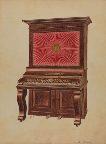 Amos C. Brinton, born in 1888, rendered this watercolor painting of a Church Organ. Brinton lived through a period of immense change in American society, shaped by industrialization, urbanization, and shifting cultural norms. The organ itself is more than just an instrument; it's a symbol of community, spirituality, and tradition. Before the advent of radio, instruments like this provided a sense of togetherness in towns and villages, becoming a focal point for social gatherings and emotional expression. Brinton's choice to depict it elevates a common, functional object to the level of art, reflecting a sense of nostalgia for a simpler, perhaps more connected, past. The floral decoration on the pedals, a gentle, unexpected touch, hint at the human element, the individuals who breathed life into the instrument, creating moments of shared experience. Consider the legacy of hymns and spirituals, the songs of faith and resilience that echoed through churches, and the comfort they provided.