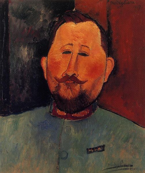 Alexej von Jawlensky made this self-portrait with oil on cardboard, though the exact date is unknown. Look at the marks he’s making; it’s like he’s building the face out of dabs of pure color. I love how he doesn't blend them, trusting the eye to do the work. The surface has this raw, immediate quality. You can really see the texture of the cardboard coming through the paint. The colors are pretty intense. The red background really makes the cooler tones in the face pop. He's using greens, yellows, even a bit of purple in there. It's all very deliberate and each mark contributes to the overall form, creating a real sense of depth and volume. The way he renders the eyes is particularly interesting. They're reduced to these simple, dark shapes, yet they convey so much. It’s like he’s trying to capture the essence of a person with the fewest possible strokes. It reminds me of some of Matisse's portraits, where he's simplifying forms to get at something more fundamental.