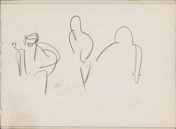Curator: Well, this is a rather intriguing sketch, wouldn't you agree? This drawing, "Konijnen," created in 1896 by Carel Adolph Lion Cachet, is currently housed right here at the Rijksmuseum. It's ink on paper, and really speaks to some key features of the Art Nouveau movement. Editor: Intruiging is definitely one word for it! At first glance, it's playful but also... disjointed? The rabbit on the left almost feels trapped in an abstract contraption. It is a cage? Or is that an absurd bunny throne? Curator: Ah, I can see why you might read that visual tension into the forms. I think we can understand this work within a broader interest in simplified forms emerging at the time. There was a desire to move beyond strictly realistic representations. Cachet explores what it means to capture an essential element. Editor: True, but look how that single line can define such volume, and I wonder why that choice of only drawing the outlines; the rabbit's very existence is almost vaporous, ephemeral! And yet it *is*. There are two; the other like a punctuation, or some mysterious growth. Curator: Yes, notice how the seeming simplicity actually belies quite sophisticated compositional choices. There’s a visual harmony at play, a calculated imbalance perhaps, reflecting the Art Nouveau philosophy to integrate nature and design. This abstraction was very much embraced by design and illustration. Editor: I am intrigued by your words on the Art Nouveau design style and harmony and, with all those abstract forms I might have never recognized these shapes as rabbits at all; to me they're like echoes of rabbits! Now, I want a wall filled with art of this style. So simple, and deeply mysterious. Curator: And in understanding the work's place in the Art Nouveau movement and thinking about artistic intention at the time, the sketch gives us such interesting insight into the period's aesthetic. Editor: Well, I see rabbits. Abstract and free. It really pulls something raw from within. Let’s go find some coffee?