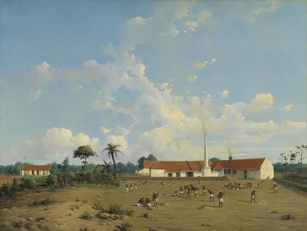 Willem Troost painted this image of the Front View of Buitenzorg Palace during the Earthquake of 10 October 1834, with oil on canvas. What strikes the eye is not just the ruined palace, but the figures fleeing in terror, and the deer, seemingly undisturbed. The image of people running from destruction is a powerful one, echoing through time. Think of the terrified figures in Renaissance depictions of the apocalypse. The emotional intensity conveyed by their flight taps into our collective memory of catastrophe. The earthquake, a symbol of unpredictable and destructive forces, has been seen across cultures and epochs as divine wrath, or nature's fury. Yet, the serene presence of the deer grazing in the foreground presents an intriguing juxtaposition. Deer often symbolize peace and renewal. Here, they stand as silent witnesses, perhaps suggesting that even amidst chaos, life finds a way to persist. This interplay of destruction and tranquility engages us on a subconscious level, reminding us of the cyclical nature of existence. The image of people in flight persists, taking on new forms, mirroring our deepest fears and hopes across generations.
