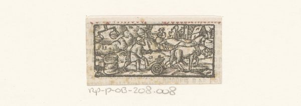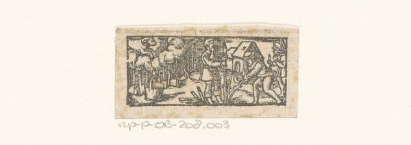Editor: This small print, "Juni," from the 17th century and created anonymously, shows a rural scene with people and sheep. It's made with etching and engraving. I'm struck by how this simple image evokes a sense of everyday life and almost feels dreamlike with all of the hatched lines used for shadows. How do you interpret this work? Curator: The prevalence of line, and particularly the parallel hatching, anchors this image in the Northern tradition. Beyond technique, this composition calls to mind classical pastoral imagery and a sense of idealized labor, of humanity living harmoniously alongside the rhythms of the seasons and the land. The sheep themselves take on a symbolic dimension, suggestive of provision, bounty, innocence, and of course faith. How do you see the placement of the figures interacting with those symbols? Editor: It's interesting to think of it like that. They're right among them, which, like you mentioned, could imply their role as caretakers and how life is cyclical. In thinking about it, could the thatched roof structure in the background symbolize shelter and domesticity? Curator: Indeed, the houses and buildings represent stability and the cultivated world. But notice how small and somewhat overshadowed they are. The true drama unfolds within the human figures and amongst the flock of sheep. Perhaps this implies something of the true seat of value for the society the print reflects. Editor: That’s a wonderful way to look at it – that what they valued wasn't necessarily the physical comforts of home but something less concrete. It makes you think about the importance of symbols, especially when they tell a bigger story. Curator: Yes, this print speaks volumes about how symbols, seemingly simple, hold profound cultural narratives. Hopefully now, the image evokes in you deeper reflections about life in that time, too.