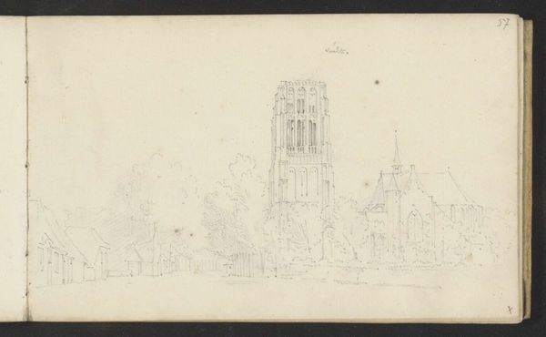 Cornelis Pronk made this drawing of Kasteel Croy with graphite on paper sometime in the first half of the 18th century. The quick sketch is almost architectural in its precision, with careful attention paid to the dimensions of the building and the details of its construction. Yet, it's also more than just a technical drawing. Graphite, being a relatively soft material, allows for subtle gradations in tone and texture. You can see how Pronk used this to his advantage, creating a sense of depth and atmosphere, capturing the way light interacts with the castle's facade. It’s worth thinking about how drawings like this fit into a wider social context. Architectural sketches helped the patron class imagine new built environments. Pronk’s drawing offers insight into a time when the built environment was undergoing rapid transformation, with castles like this one giving way to more modern forms of architecture. The drawing is a physical record of that shift.