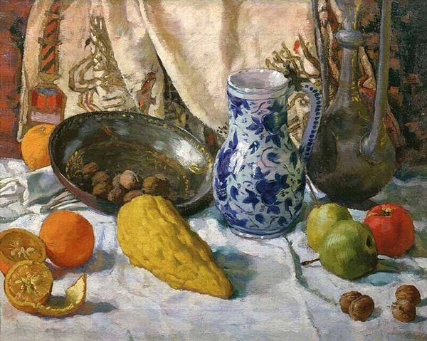 Pyotr Konchalovsky made this still life with begonia with oil paints on canvas. The way he’s piled on the paint, it’s like he’s sculpting with colour! Look at the leaves, how they’re not just green, but a mix of greens, reds, and browns, as if the painting is alive and breathing. It really speaks to how art-making is a process, not just a picture. The materiality of the piece is key. The thick, almost aggressive brushstrokes give it a real sense of energy. Notice the way the paint sits on the canvas, the texture adding to the emotional punch. The whole composition, with its vivid colour, reminds me of some of Cezanne’s still lifes. It's like Konchalovsky is in conversation with the greats, adding his own voice to the ongoing dialogue of painting. And isn’t that what art is all about, an open, never-ending conversation?