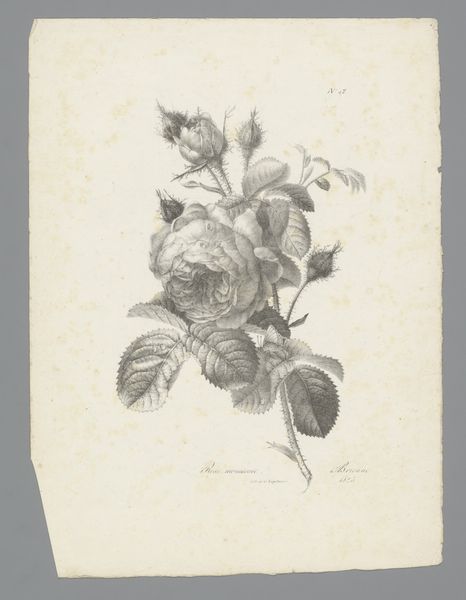 Curator: Welcome! Before us we have "Rozen, anjers en fuchsia", or "Roses, Carnations, and Fuchsia" by Anton Weiss, completed in 1836. It's a lovely drawing, currently held in the Rijksmuseum's collection. Editor: My immediate impression is the delicate beauty, and perhaps also an undertone of melancholy. The greyscale shading gives the work a wistful atmosphere. Curator: Interesting. The artwork’s medium – graphite and pencil on paper – speaks to the 19th-century fascination with capturing nature with readily available materials. One could consider the labor involved in such a detailed botanical rendering. Weiss must have observed these flowers intently, tracing their delicate structures repeatedly on the page. Editor: Yes, and to view flowers merely as decorative belies their rich symbolism throughout art history. Roses and carnations both have long traditions of symbolizing love, purity, and even transience. Within a broader societal lens, these floral arrangements were popular in bourgeois culture. Think about the messages embedded within presenting and receiving such compositions during this time period. Curator: Indeed, we must also consider that the consumption of botanical illustrations like these was very popular and aligned with colonial ambitions during this time; a kind of aesthetic subjugation through cataloging and ordering nature, even the exotic blooms that are alluded to here. Editor: Precisely! And who has access to appreciating—or possessing—these images? It reflects not only an interest in the natural world, but also power dynamics regarding trade and exploration. How is this imagery, so seemingly gentle, linked to larger historical injustices? Curator: A challenging question and one worth sitting with when we think about artistic practices like drawing and their social frameworks. The production is deeply rooted in the economy, and it shaped aesthetics through that context. Editor: Agreed. As viewers, we must continually acknowledge the silent narratives woven into even the loveliest arrangements. By looking beyond the surface, we activate discussions regarding historical inequalities, class, and how certain groups’ experience is prioritized over others. Curator: Thank you for contextualizing what may have appeared as just a botanical landscape drawing. It makes you think about what "ordinary" practices uphold within an age. Editor: And hopefully encourages critical questioning, even of those works which seem like simply a peaceful scene of some flowers.
