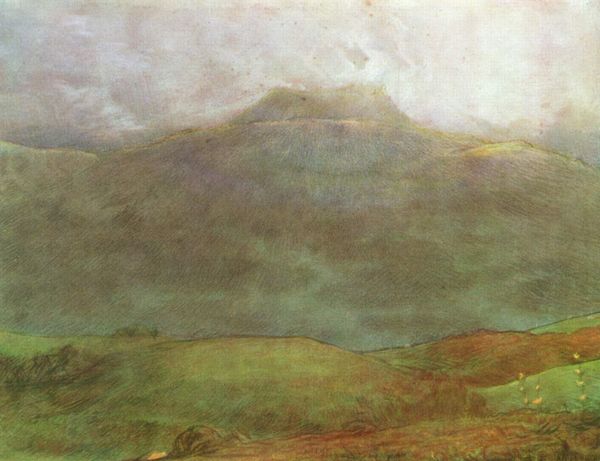 Curator: Here we have Ladislav Mednyánszky’s “Motif from the Belianske Tatra,” likely painted between 1880 and 1900. Editor: It’s… foreboding. All that muted grey and barely there sunlight. Very somber. Curator: Somber indeed. Mednyánszky was known for his landscapes capturing the mood of a place. Let’s consider the materiality of this painting. You have visible brushstrokes in the thick oil paint creating texture, especially in the foreground, making the tall grasses feel almost tactile. Editor: Those grasses are heavy with symbolism, aren't they? Nature in its untamed state, reflecting the psychological landscape of the artist? The Tatra mountains were potent symbols for the Romantics, a site of sublime encounter and spiritual awakening. Curator: Precisely. This was an artist who felt deeply connected to place and the peasantry. He spent considerable time living amongst them, sharing their hardships and documenting their lives. It makes you wonder about the materials he had available to him in that time and place, and how those limitations may have played a role in such dark tonality. Editor: The somber hues speak to a certain melancholic mood typical of the era, definitely. Perhaps the muted colours reflect not only the materials, but a cultural climate. Curator: Possibly both are true. It invites questions about the economics of paint production at the time, too. What colours were readily available and affordable? The muted palette is partly stylistic, but also shaped by those realities. The visible brushwork and plein-air approach show a sensitivity to the process and conditions of making. Editor: It is, ultimately, about seeing more than just a landscape. It's a glimpse into a state of mind. A coded language of light and shadow and how the Tatra mountains signified a place of emotional intensity, rendered with paint and feeling. Curator: Well put. It shows how context and creation are entwined and also how an artwork echoes beyond its immediate making. Editor: Exactly. It gives you something to consider, and I certainly have new aspects to reflect on myself.