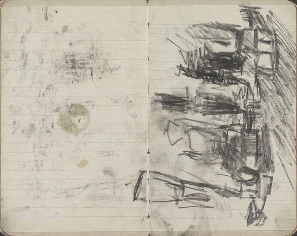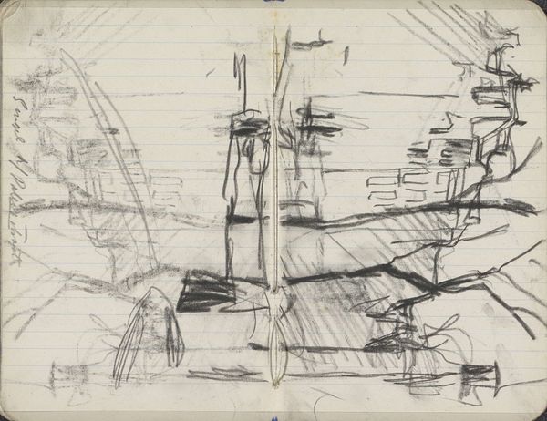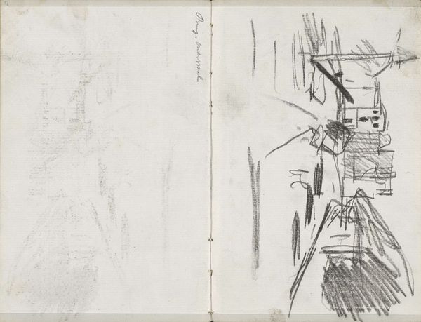 This is a sketch of Amsterdam with boats by George Hendrik Breitner. It is made with graphite on paper. The sketch offers a compelling study in contrasts. Notice the loose, gestural lines; they capture the essence of the urban landscape in a fleeting moment. The composition is divided, with dense, dark marks on the left balancing the lighter, more ethereal strokes on the right. Breitner’s use of line is particularly striking, with the horizontal lines of the canals and boats intersecting at sharp angles. This use of intersecting lines and contrasting tones challenges traditional perspective, inviting us to question fixed representations of space. Breitner isn't merely documenting a scene; he's deconstructing it, prompting us to consider how we perceive and interpret our surroundings. Through its formal qualities, this sketch encapsulates a dynamic interplay between representation and abstraction, making it a rich site for contemplation.