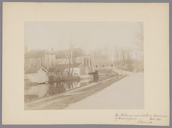 Curator: Here we have a gelatin silver print dating from before 1915, showing a vista of Breukelen along the Vecht river, simply called "Gezicht op Breukelen aan de Vecht." Editor: It feels like stepping into a half-remembered dream. Sepia-toned nostalgia… the light is so soft, it nearly dissolves the edges of the buildings and trees, creating an incredible, slightly haunting stillness. Curator: The softness comes from a Pictorialist aesthetic—it imitates the appearance of paintings with soft focus, tonal variation and an emphasis on atmosphere rather than detail. Pictorialism, emerging in the late 19th century, argued photography should be considered fine art. Editor: Absolutely, it definitely elevates a simple snapshot into something truly evocative. It almost looks like an impressionist painting. That gazebo sitting right on the water… I can almost hear faint music drifting from it, can't you? Curator: This image resonates within a complex web of cultural and historical factors. During the late 19th and early 20th centuries, Dutch artists were looking to define a national identity through landscape. Picturesque river scenes such as these evoked ideas of Dutch heritage, tradition, and tranquility during a time of social and technological change. Editor: Thinking about it like that makes it a statement about cultural identity at a specific time and place, instead of simply a nice scene. Knowing that definitely adds an extra layer. Curator: The fact that we do not know the photographer reinforces the idea that it’s the place, Breukelen, rather than an individual artist that matters most. It emphasizes the role of the town as a cultural touchstone. Editor: Still, somebody, somewhere felt this scene deserved more than a passing glance, it felt weighty with meaning. Makes you wonder who stopped, saw the beauty, and then clicked the shutter to share it with the world. What's your take? Curator: It is fascinating to consider the interplay of aesthetics, cultural identity, and the power of photography to capture a specific moment in time—while shaping public perception. Editor: Right, a world now gone, but lingering still in that hazy, melancholic silver. Very affecting.