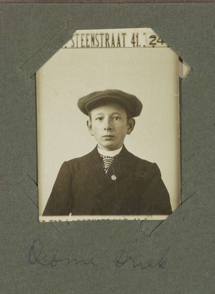 Curator: We’re looking at a photograph here—the museum card tells me its title is *Portret van een vrouw met een hoed*, or “Portrait of a Woman with a Hat,” created around 1921. It's rendered in the Photo Couleur style. Editor: The mood is...stark. Austere, almost. The composition feels very formal, very posed, centered on the woman, naturally, against what looks like a hand-painted backdrop of leafless trees. Curator: The material quality is also interesting here—this photographic method would have likely involved significant handwork in the darkroom to achieve the subtle coloration and tone. We're not simply seeing a snapshot, but a carefully crafted image where labour and the specific techniques are foregrounded. Consider what such portraiture represented to the sitter in 1921—an aspirational or sentimental marker of one's identity, within a particular economy of image production and consumption. Editor: Agreed. Although the setting looks somewhat theatrical, I think the realist approach contributes significantly to the artwork’s message, offering us what might be considered to be a truthful likeness. See how the lighting catches the textures of the tweed and creates those highlights that delineate her face so precisely? What about the tonal range and controlled composition? It speaks to the careful artistry of capturing both likeness and character. Curator: The social context also strikes me here. During the early 1920s, mass production and changing cultural mores impacted not just materials, but the democratisation of image-making itself, expanding consumer culture. This form of studio portraiture was available, accessible, but required careful presentation, as well as the patronage that recognised photographic practices as art. Editor: To me, the details speak volumes, visually—her composed facial expression, the plain yet well-tailored clothing. It's all quite contained, speaking more about interiority rather than outward show. I do wonder about that landscape; that is more symbol than place, after all. Curator: I’m struck again thinking about the image’s journey through different forms of consumption, through digitization and online collections. Now the subject's presence enters spaces wholly outside their intent. Editor: Indeed. The enduring presence of this photograph continues to offer formal, lasting proof about human engagement across time.