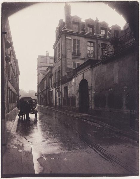 Eugène Atget made this photograph of the Rue De La Montagne Ste. Genevieve in Paris using a large-format camera and glass-plate negatives. The sepia tones and soft focus are due to the materials and processes of early photography. Atget was interested in documenting the changing urban landscape of Paris. The paving stones, buildings, and even the gas lamps are presented with a deep sense of materiality, revealing the city's infrastructure as a kind of built craft. Look at how the wet cobblestones glisten, reflecting the diffused light, and the patina of age on the buildings. These details speak to the labor of construction and maintenance, often unseen, that shapes our environment. Atget wasn't just recording architecture, but the very fabric of Parisian life, its rhythms, and the work that sustained it. By focusing on these everyday elements, Atget elevated them, suggesting that the true character of a place lies not just in its famous monuments, but in the texture of its streets and structures.