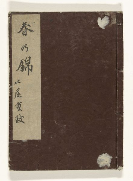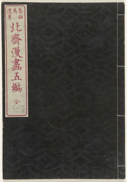 Curator: This striking cover before us belongs to “Sketches by Hokusai – Part 3,” a print made in 1878. It’s currently held right here at the Rijksmuseum. Editor: Immediately, I’m drawn to the muted palette. That reddish-brown paper exudes a sense of age and quiet contemplation. Curator: The woodblock print's cover is characteristic of Hokusai’s ukiyo-e style. We should contextualize ukiyo-e as art for the people. This kind of work brought art into the homes of everyday citizens. Hokusai was responding to the changing class dynamics in Japanese society. Editor: Absolutely, it’s crucial to consider how societal shifts influence artistic production. The “floating world” depicted in ukiyo-e certainly carries undertones of social critique, especially considering the political and economic changes of that era. Curator: Consider also how the design of the book itself— the binding, the title cartouche— serves a practical purpose. The text clearly labels the book for easy identification. The cover has become so familiar as an instantly recognizable cultural touchstone. Editor: Right. And the visual simplicity, that blocky, almost abstract title design… there’s an element of punk ethos at play here, a rejection of elitist visual language. The color also plays a part in the history. It reminds me of resistance movements across many nations. Curator: The reception history is fascinating too, how Hokusai’s work, and ukiyo-e in general, influenced Western art movements like Impressionism. Its embrace by a broader public reflects the democratizing potential of print media. Editor: And today, this cover retains a power. It invites us to imagine what’s inside, what’s hidden within those pages. This humble-seeming paper package holds a legacy of ideas and art that resonates even now. Curator: It's truly fascinating how this book's design connects to a history of cultural exchange and visual defiance. Editor: Indeed, its ability to spark dialogue about representation and visual culture speaks volumes about its enduring significance.