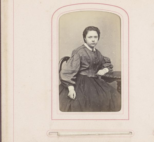 This is a portrait of a young Indonesian woman by Woodbury & Page, an albumen print with a muted monochrome palette. The subject's direct gaze and the composition's symmetry create a formal, almost confrontational encounter. The structural arrangement, from the tight framing of her torso to the careful positioning of her hands, emphasizes control and intentionality. Light is diffused, casting soft shadows that highlight the texture of her clothing and the contours of her face. The speckling across the print adds an almost ethereal quality. In its time, portraiture was often about asserting identity and status. Here, however, the structural elements suggest something more complex. Is this an ethnographic study, a commentary on colonial power dynamics, or something else entirely? The composition invites us to question not just who is being represented, but also how and why. The photograph acts as a signifier, loaded with cultural and historical meanings that are open to ongoing interpretation.
