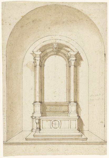Editor: Here we have a pen and ink drawing, dated between 1490 and 1510, titled "Architecture Study containing Details of One or Several Buildings" which may depict a portion of Saint Peter's Square in Rome. The neutral tones create a rather academic feeling, precise but subdued. What's your interpretation of this piece? Curator: This drawing offers us a fascinating glimpse into Renaissance modes of thought. Architecture during this period was viewed as a direct reflection of societal order. This study, perhaps intended for a grand project like St. Peter’s, reflects a deep investment in ideals of balance and harmony, often perceived as inherently masculine values structuring public life. Editor: Masculine values? Curator: Think about the role of patrons, typically men, who commissioned such structures, effectively shaping the visual landscape and, by extension, the lived experiences of all who occupied those spaces. Did women's voices factor into these designs? Where were spaces specifically designed with women in mind? Editor: That's an interesting point! The focus is typically on the artistry and mathematical precision of the design itself. I hadn't considered who was driving these projects from a cultural standpoint and who might have been excluded. Curator: Precisely. Also, note how the imposing structures symbolize power dynamics and socio-political control during the early stages of western capitalism. By looking closely at these 'details', we start questioning the apparent neutrality of form and proportion. Can you notice that there are writings throughout the sketch? These were instructions on materials and structure and are testaments to that power. Editor: Now I see more than just a sketch of buildings; it’s also about the power structures that were literally being built into the foundations of society. It is worth delving into it deeper and finding further connections. Curator: Exactly! We must engage art to broaden the way we critically look at society.