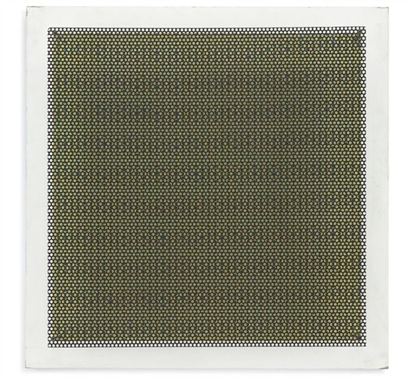 In this artwork by Antonio Asis, titled "4 - cuadrados 4 - círculos," the canvas is dominated by a grid-like structure, juxtaposed with the underlying shapes of squares and circles. The grid, an ancient symbol of order and control, overlays the more fluid and organic circles, evoking a tension between the rational and the intuitive. We see a similar visual dance in ancient cosmological maps where structured grids attempted to make sense of the celestial spheres. Think of the mandala, where geometric forms contain and organize the spiritual essence of the universe. Here, Asis touches upon a fundamental human impulse: to impose order on chaos. The contrast between rigid lines and soft curves creates a compelling visual tension, engaging the viewer in a subconscious dialogue about control, freedom, and the inherent human desire to find balance in a world of duality. This symbol is cyclical, resurfacing in different forms throughout history.